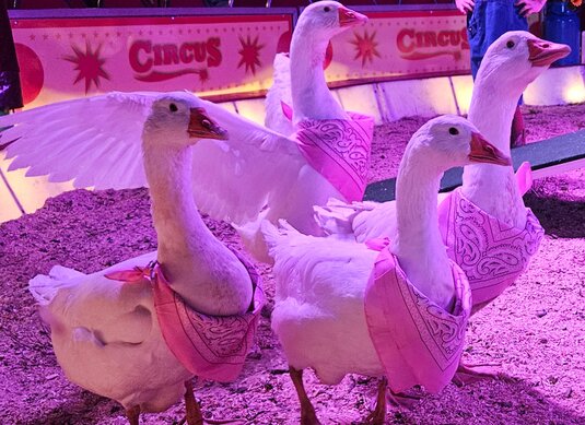 Ihre fröhliche Enten-, Gänse- und Truthahn-Revue sorgt für jede Menge Lacher und staunende Gesichter, wenn ihre Tiere kunstvoll, frech und liebevoll ihren großen Auftritt haben. 💛
